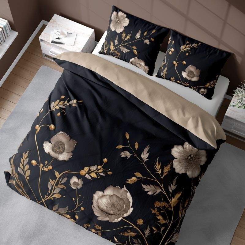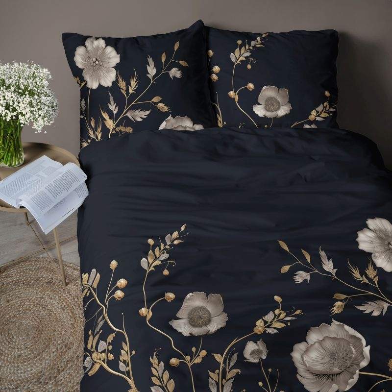 Francúzske obliečky 3D Kvety na čiernom micro 220/200, 2x70/80