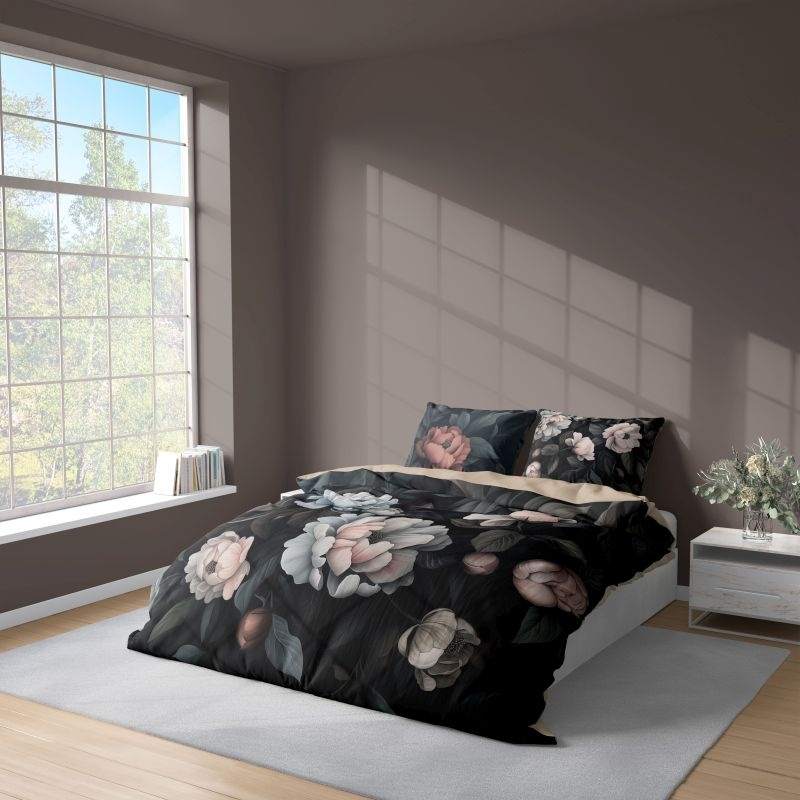 Francúzske obliečky 3D Kvety na čiernom micro 220/200, 2x70/80