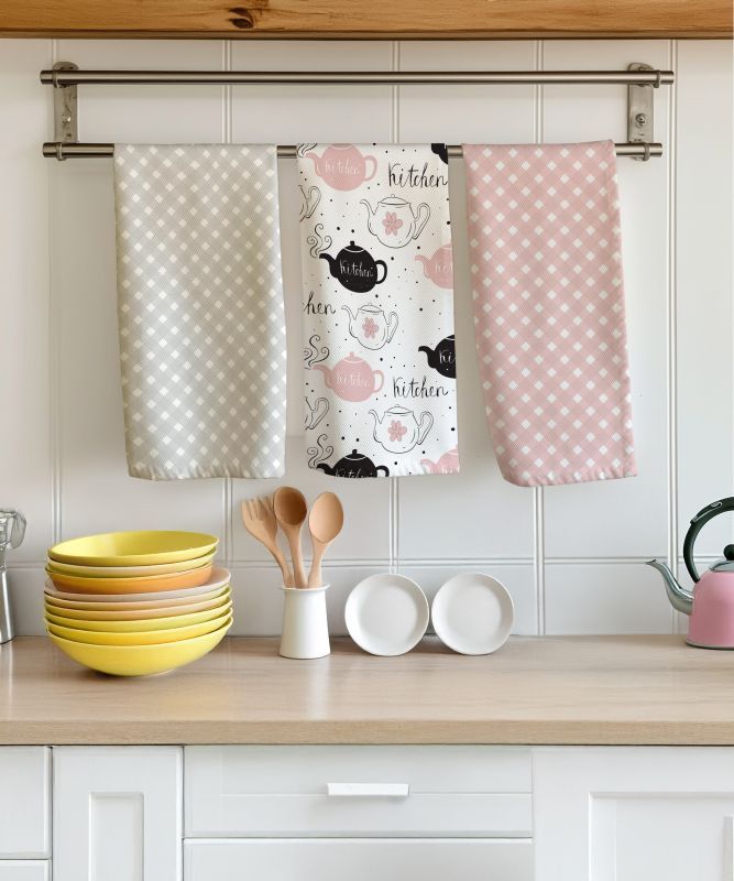 Štýlová sada troch bavlnených utierok Kuke s potlačou je praktickým pomocníkom aj modernou dekoráciou vašej kuchyne. Utierky o rozmere 40×60 cm sú vyrobené zo 100% bavlny, majú dobrú savosť a príjemný materiál. Vďaka kvalitnému spracovaniu a elegantnému dizajnu sa hodí na každodenné použitie aj ako originálny darček.