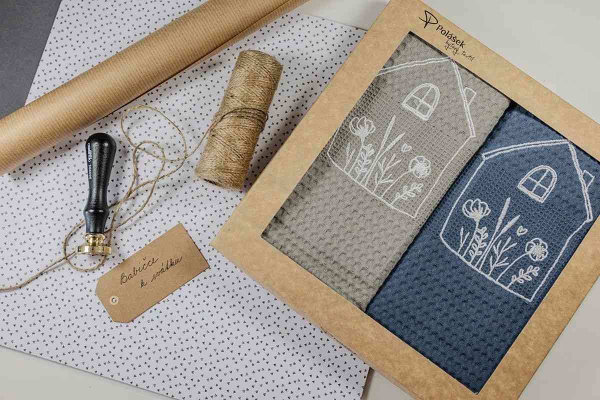 Darčeková sada 2 ks vyšívaných vaflových utierok, rozmer utierky 50x70 cm, utierky sú balené v darčekovej krabičke. Vaflové utierky sú vyrobené zo 100% bavlny, možnosť prania na 60 ° C